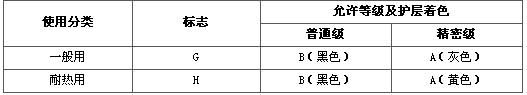 使用分類、允許等級、護層著色標志: