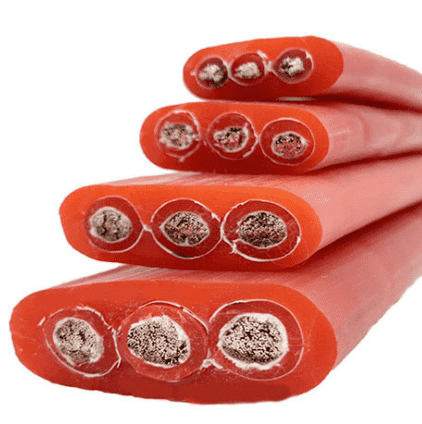 ???YGCB、YGVFCB、YFGCB 硅橡膠護套扁平軟電纜具體規格可根據客戶需要銷售,若長距離懸空或其他原因承受較大的拉力,可在其間加入加強鋼絲,在電纜型號后加入-nT(n表示鋼絲的根數,根據電纜的寬度決定)。