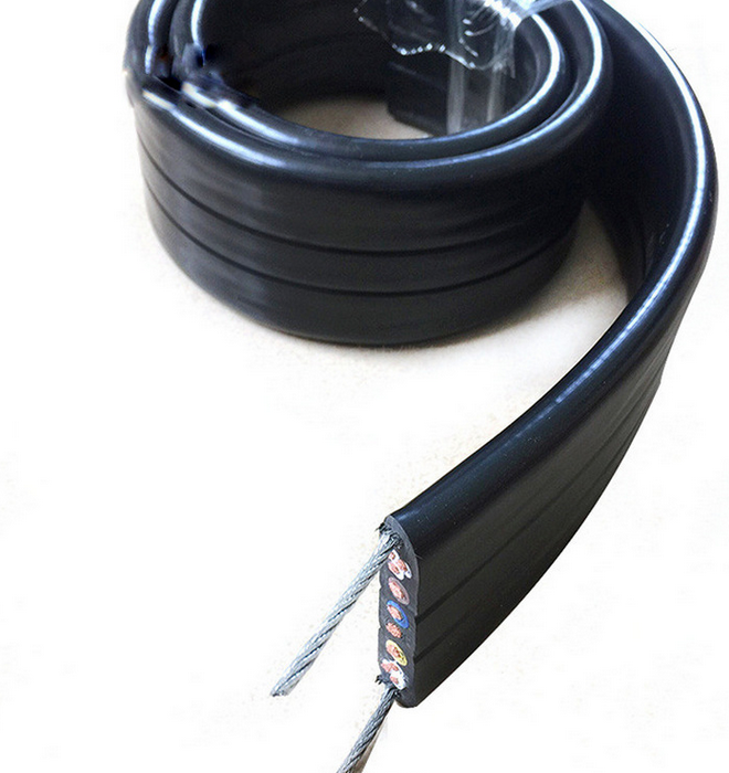 - ?抗拉元件?:內(nèi)置兩根鋼絲,承擔(dān)電纜自重及電梯移動(dòng)時(shí)的外力,防止機(jī)械損傷?。